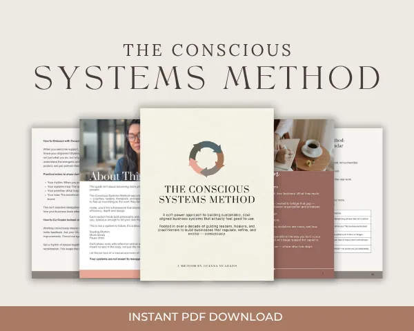 The Conscious Systems Method™ is a guide that helps intuitive, service-based entrepreneurs simplify, strengthen, and sustain their business — without losing the soul of their work.